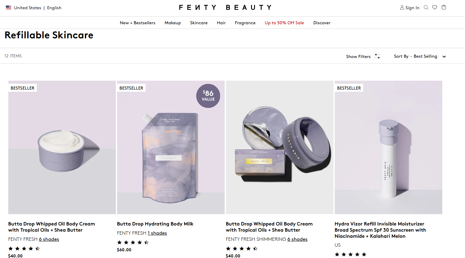 A strong example is Fenty Beauty. Their refillable systems use solid outer packaging with clean, click-in refills. Nothing changes for the user – same look, same routine. Just less waste.