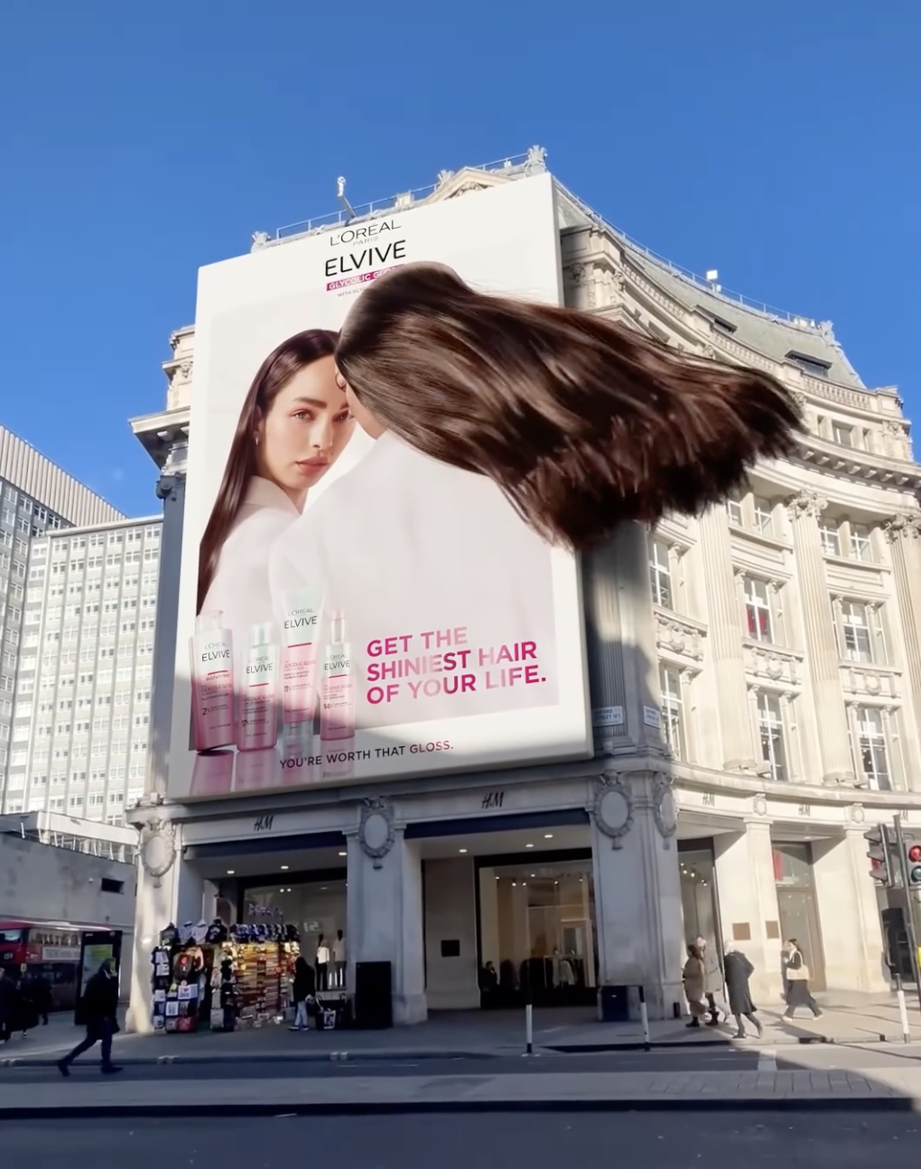 L’Oréal Paris showed what FOOH can do: massive 3D billboards at Oxford Circus and other places made hair look impossible shiny and hyper-real, practically flowing off the screen.