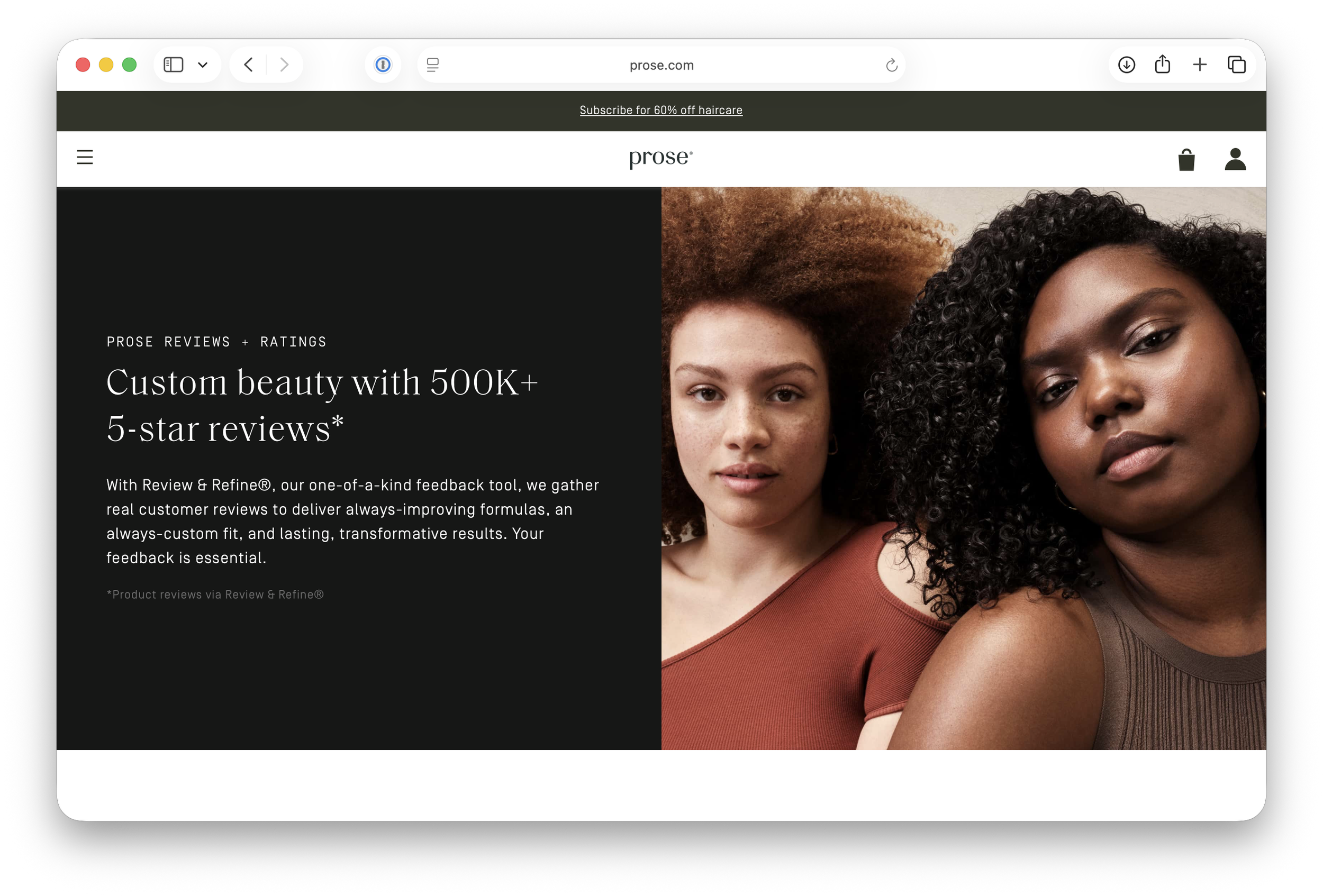 For example, hair care brand Prose encourages users to share their real experiences and results. You’ll find authentic customer reviews on their website and also user-generated posts across social media platforms.