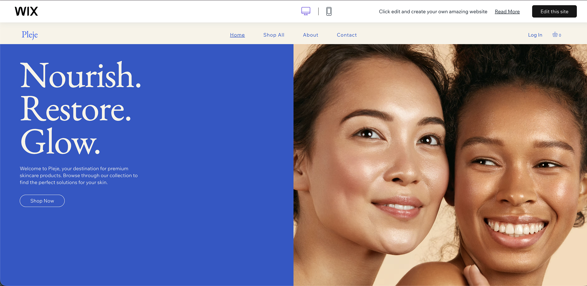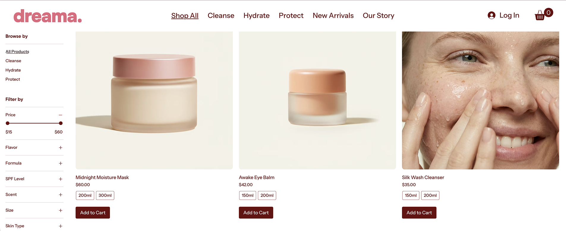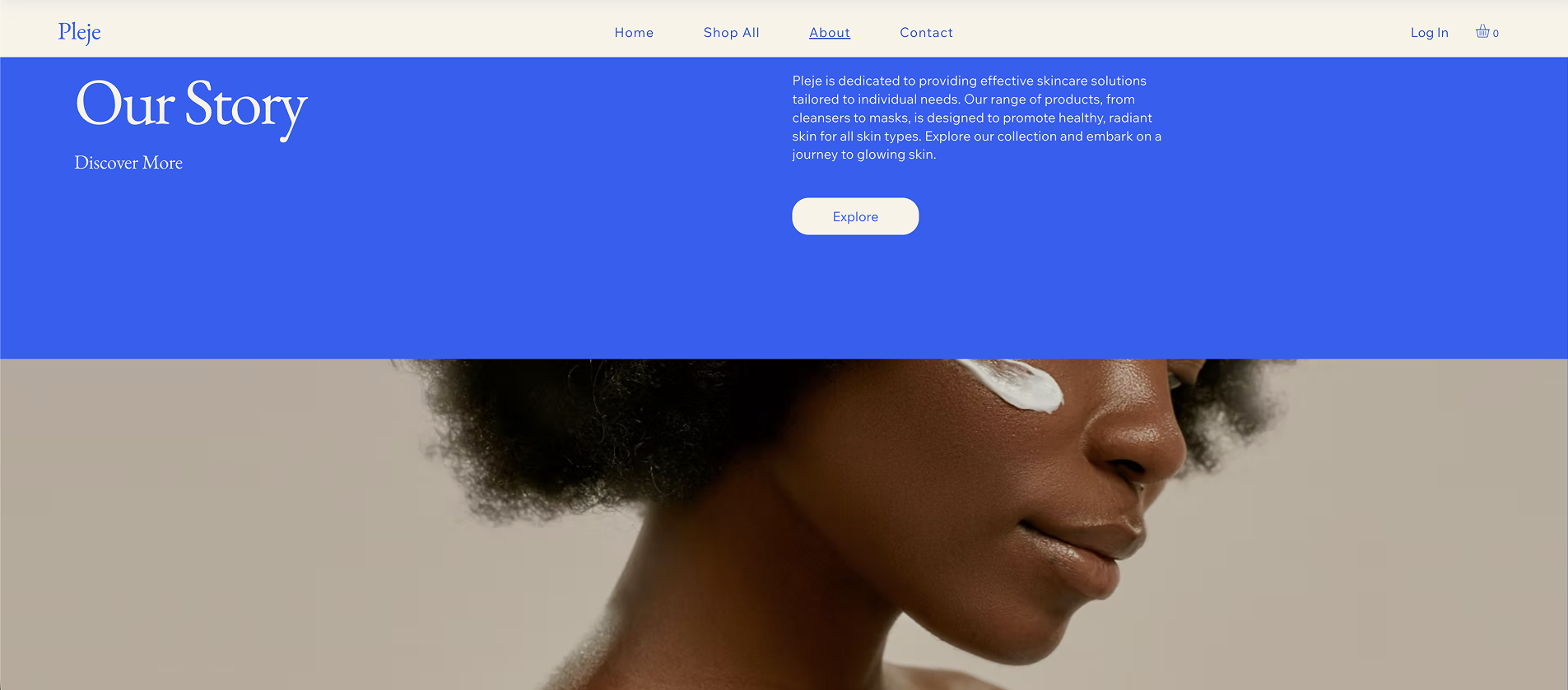 The large, soft-focus imagery here is doing the heavy lifting for your brand identity. In beauty, customers buy the "after" photo – the glowing skin and the self-care moment.