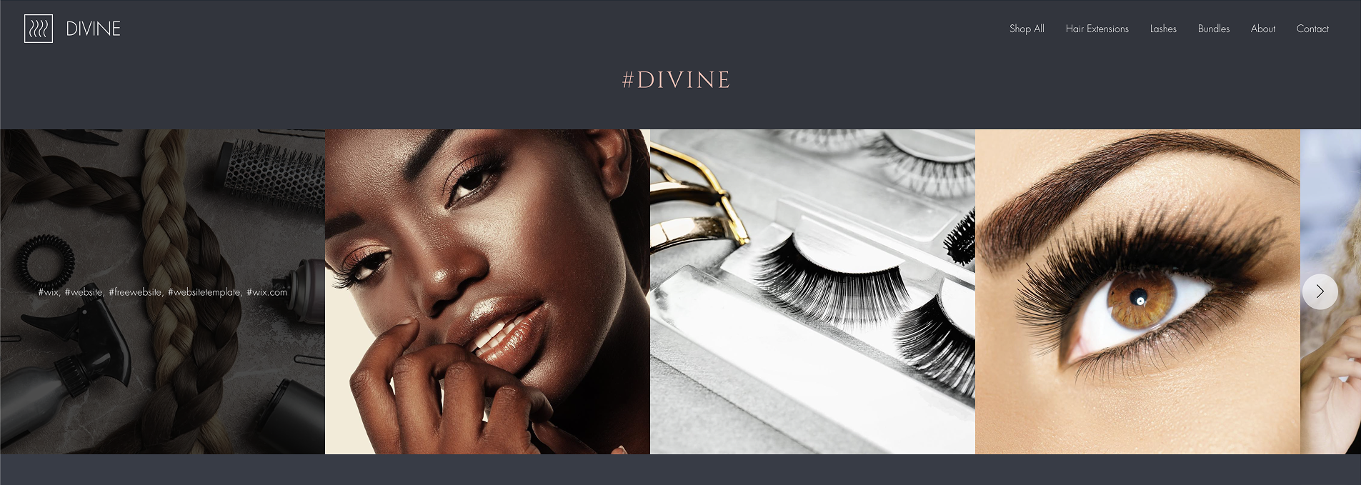 Specialty stores dealing in niche products like hair extensions and lashes live on high-contrast visuals. Your customers are looking for drama and transformation, not subtle morning skincare routines. This layout prioritizes texture and specific product variations to justify the higher price.