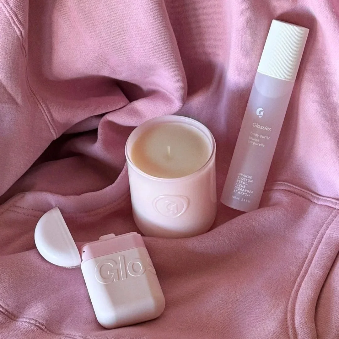 Glossier built an empire on minimalist pastel branding. Pink color dominates here.