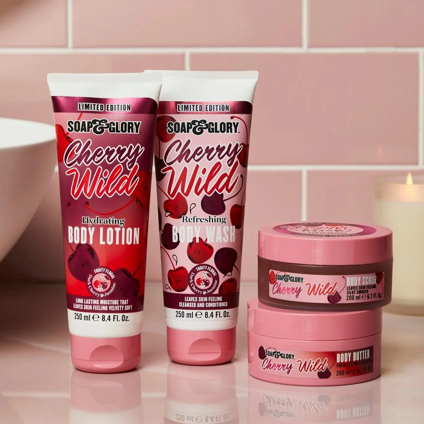 Soap & Glory features a mid-century retro, flirty, and typography-forward design. They prove that maximalist cute works when typography is disciplined.
