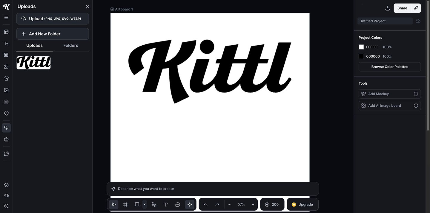 Kittl Pro ($15/mo): Unlocks unlimited vector graphics exports and 2000 AI tokens per month – the preferred option for print-on-demand and ecommerce businesses.